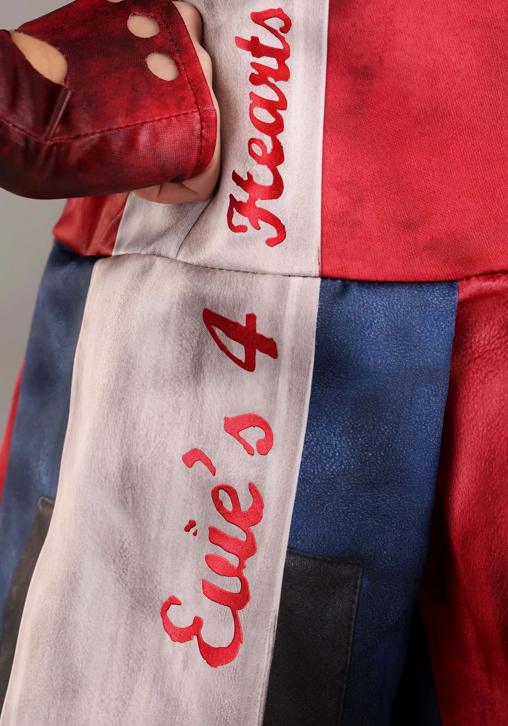 Evie definitely has our hearts because we love to make great fashion statements, too! Let your kiddo join up with the VK crew in this officially licensed and Deluxe Evie costume from Descendants 3. This pant and dress combo features Evie’s unique style, including a blend of black, blue, and red colors with white stripes at the side. Printing for “Evie’s 4 Hearts” is along the sides to show how well Evie’s fashion line is developing! All you’ll need to do is finish off your tyke’s look with Evie’s iconic blue hair and it’ll be time for a magically good time.
