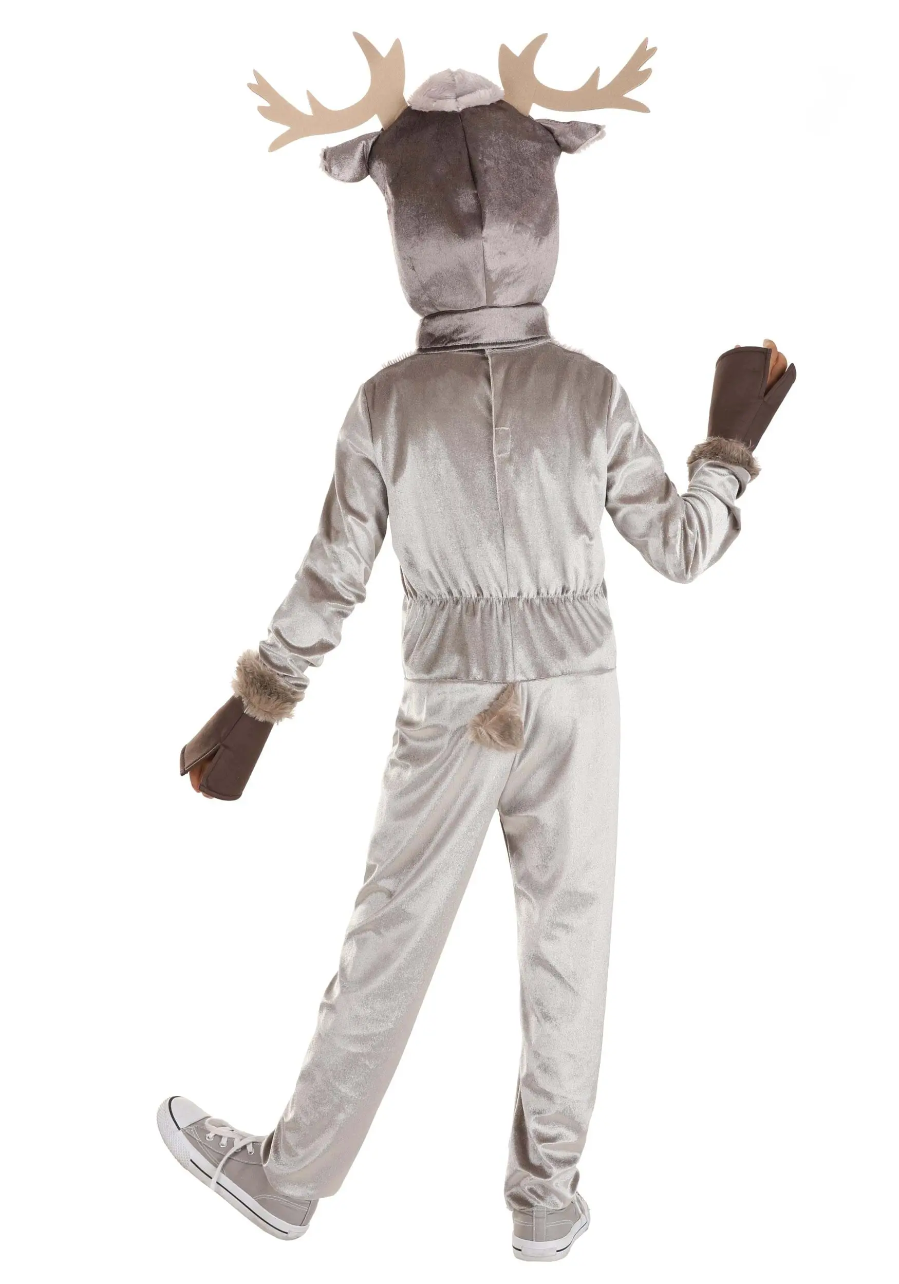 Help your best friend, a princess, and a talking snowman find the frost-power queen and save Arendelle (twice!) when you wear your officially licensed Disney Frozen Toddler/Kid’s Sven Costume for Boys! The exclusively designed one-piece jumpsuit is made of super-soft gray polyester faux fur that feels like how we imagine Sven’s would feel after a nice bath in the palace stables. A hook and loop fastener in the center back and elastic in the the waistband keeps the outfit snugly in place even when running from snow monsters. The included hoof-shaped brown foam wrist cuffs slide over your hands. The hood fastens under your chin and is decorated with printed eyes and nostrils as well as a soft-sculpted reindeer snout. Two stiffened felt antlers give you Sven’s full profile!