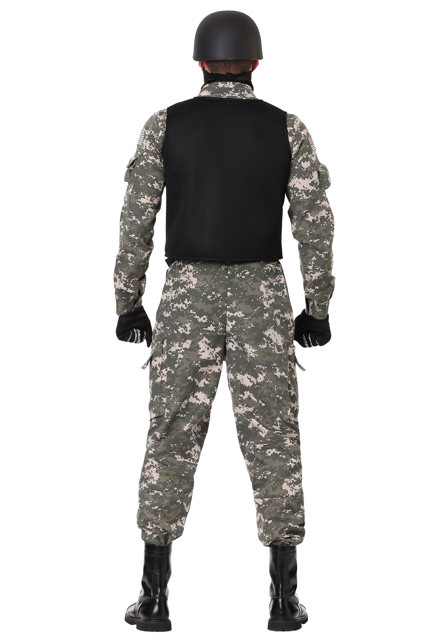 This Battle Soldier costume is a HalloweenCostumes.com exclusive, Made by Us right here in our own costume studios. it comes with a jumpsuit, vest, helmet, face mask, belt, and a pair of gloves. The jumpsuit has a digital camo print, and secures with a zipper in front. The vest, belt, and helmet look supremely tactical. And the skeleton print face mask and gloves add that intimidation factor to really amp up the effect! Just wear your own military style boots or browse our selection of costume boots, and you’ll be ready to roll. (Pictured weapon accessories sold separately.)