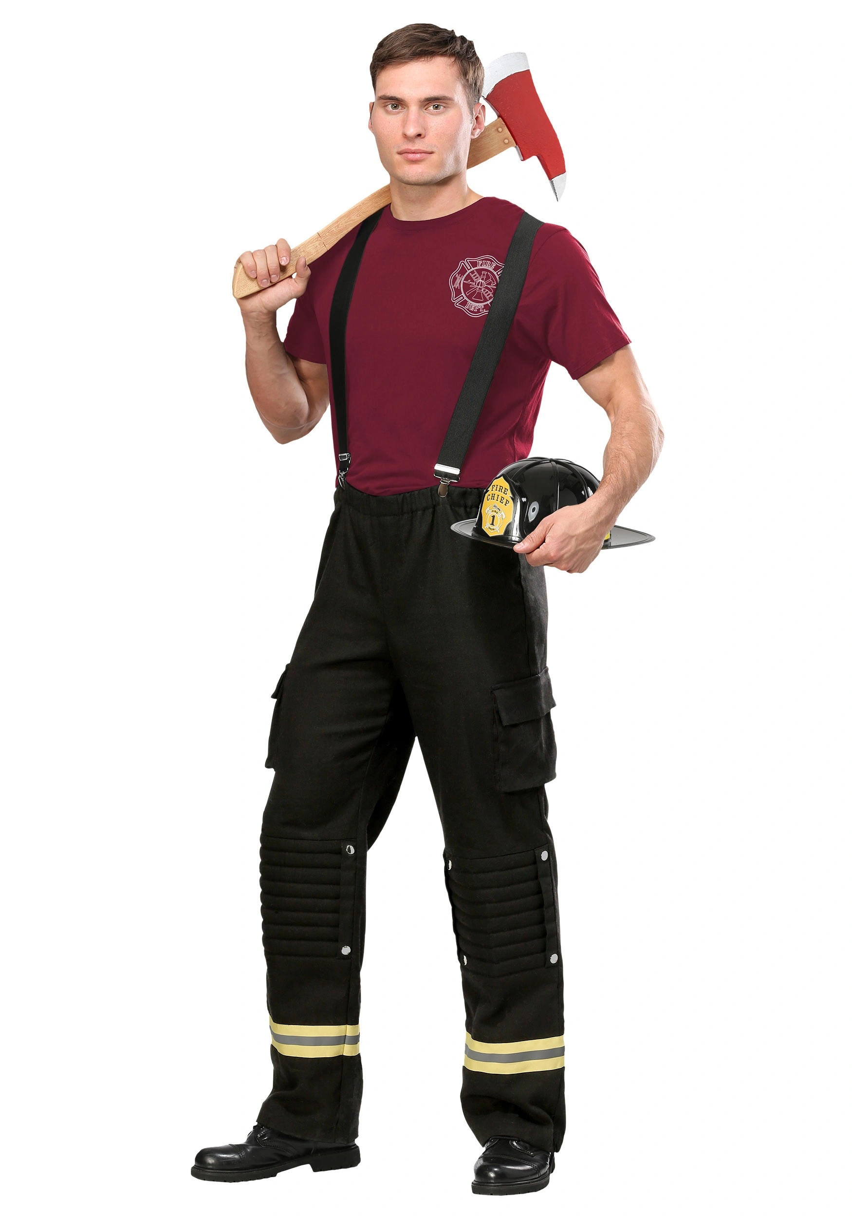 You’ll feel like an official hero in this brave ensemble that’s made by us right here at HalloweenCostumes.com. Though, we will admit, you’ll have to go through some training before you get fire pole access! The black pants with Hi-Vis stripes on the bottom would fit right in when riding on a fire engine. Layer the official looking printed t-shirt under the black suspenders and top the ensemble off with the included cap and you’ll be ready for anything. That is, if that anything is made up of a “hot to trot” costume party!
