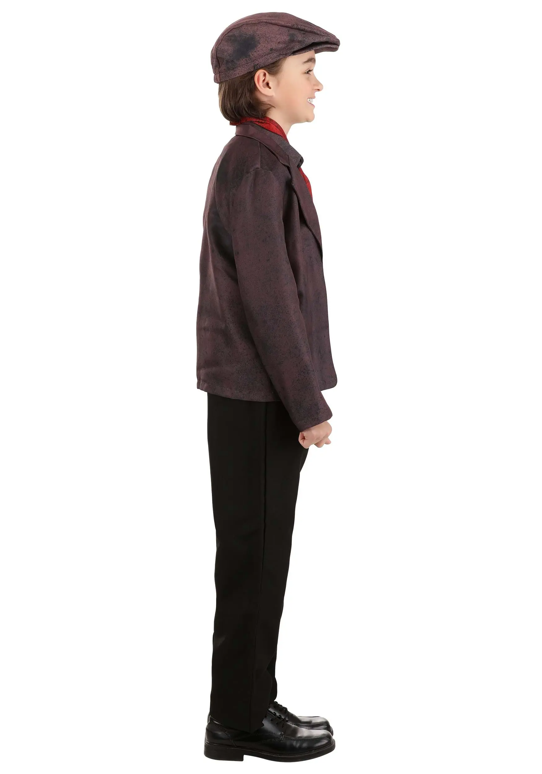 Your kiddo will look just like the charming chimney sweep from Disney’s Mary Poppins in our Kid’s Bert Costume! This officially licensed ensemble starts with a sleeveless shirt that buttons down the front and has a collar, just like the one that Bert wears in the movie. A slightly darker jacket fits well on top of the shirt, and a red necktie adds the finishing touch to the top. The last piece is a newsboy-style hat that matches the ensemble. All the pieces are printed to look like they’ve been dusted with soot, so your child will be ready to sing, dance, or clean out a chimney!