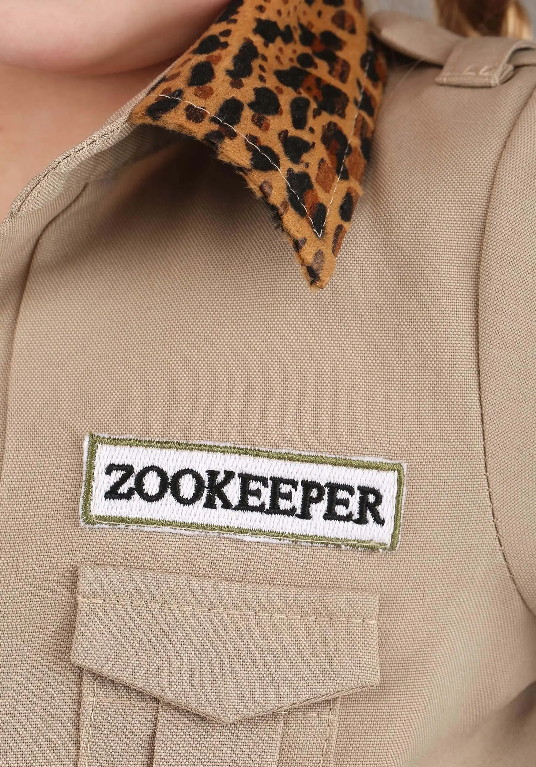 Promote your little one to head zookeeper with this exclusive Zookeeper Toddler Costume! Our in-house team of designers thoughtfully composed the sturdy polyester poplin jumpsuit to feature all the finer details an authentic zookeeper uniform might. Tailored pockets on the chest and legs allow your toddler to carry small essentials. Meanwhile, an included belt threads through attached waist-loops and secures over the front button closure with a brass buckle—extra hold, in case any rogue plushies get too playful! For a whimsical touch, leopard print faux suede decorates the collar, sleeve cuffs, and button panel. Embroidered patches give the costume an official look. And the charming uniform is completed with an included pith helmet-style hat!