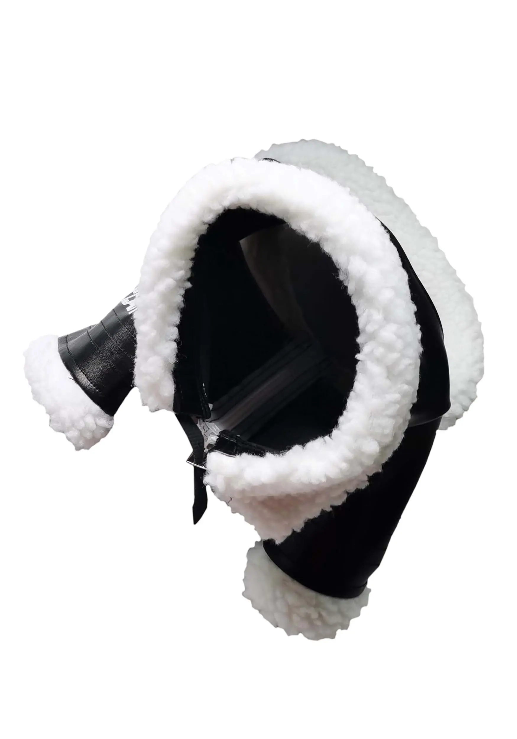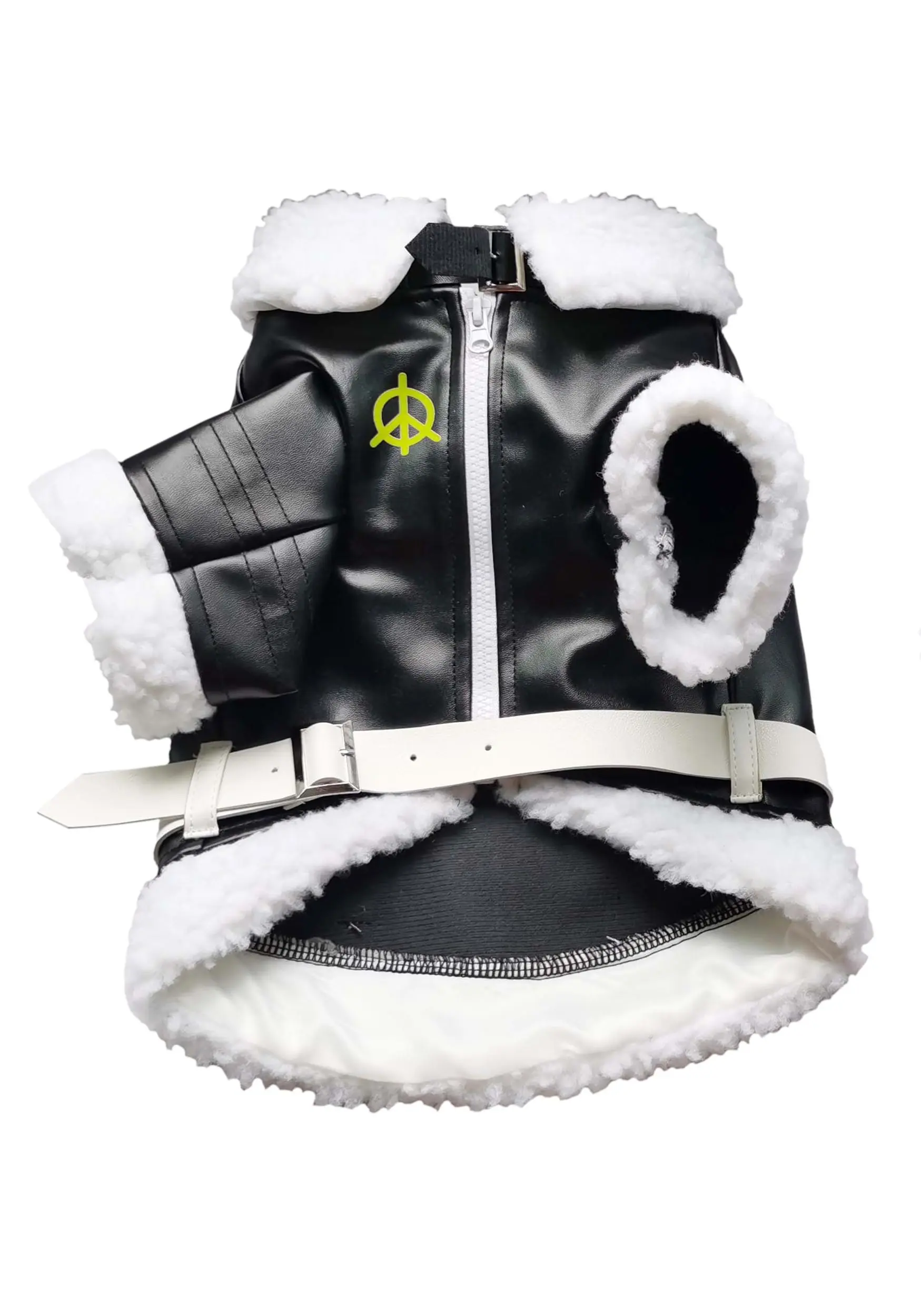 Is your dog the Goose to your Maverick? Do you spend the weekend catching up on Sons of Anarchy? Or are you just looking to boost your best friend’s image? This Leatherlike Bomber Pet Jacket is the accessory you need. The faux shearling around the hem, collar, and cuffs is soft and comfy, and the inner lining is smooth on the coat. The exterior has a leather look without the leather expense or upkeep. Just wipe it clean and it’s as good as new! The belt around the middle helps it stay in place. Add a pair of dog sunglasses or some biker boots and the look will be complete!