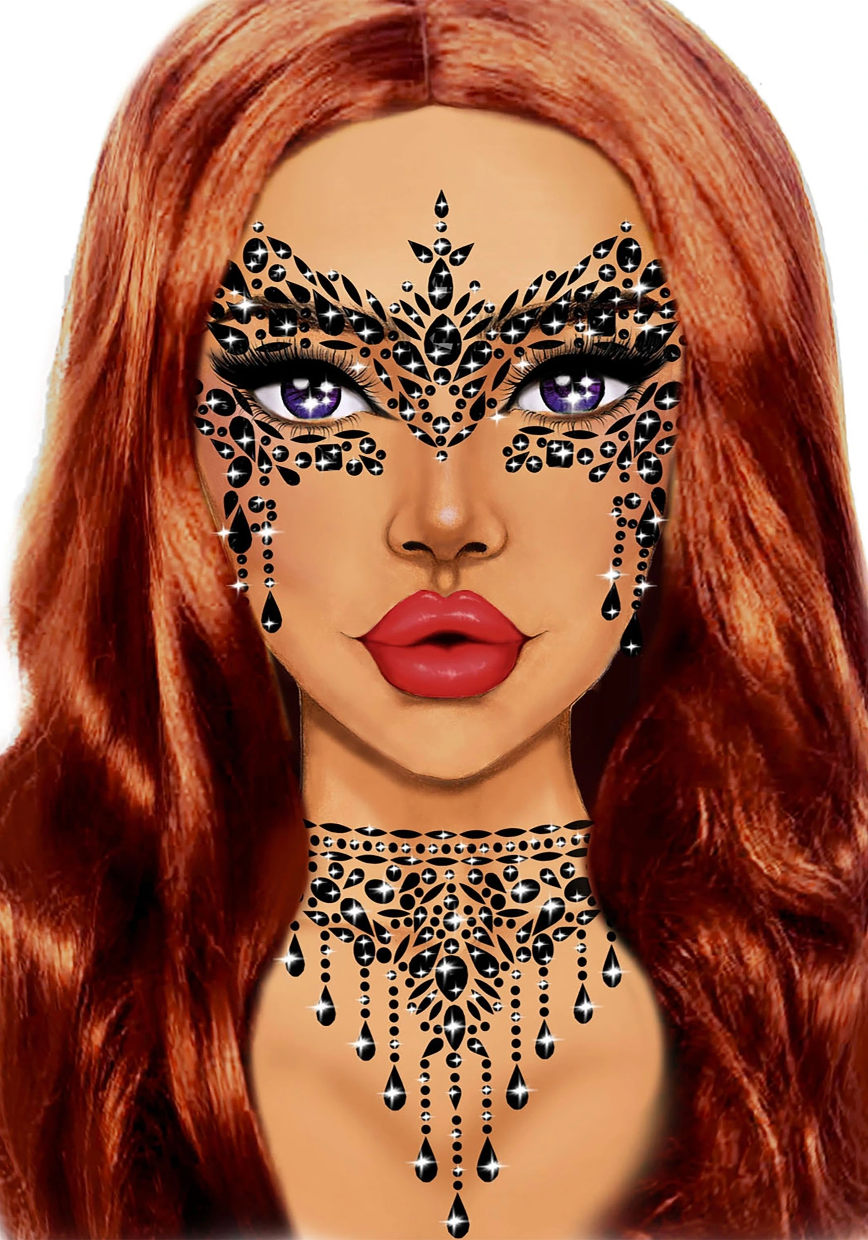 Luckily, you found us! These Black Masquerade Adhesive Face Jewels are the perfect compromise for your party style! This costume accessory has all the glitz and glam of your dream mask without the hassle of ties or handles. Simply adhere the imitation gems to your face and you’re set for your glamorous evening!
