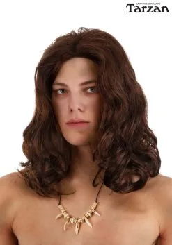 Practice your roar, because this exclusive, officially licensed Tarzan Brown Wig for Adults will help to turn you into a larger-than-life legend! The wig cap has elastic in its back edge to ensure a snug fit and is completely covered by high-quality polyester synthetic hair. The brown locks are pre-styled in loose waves falling from a center part, but can be styled further with non-heated tools if desired.