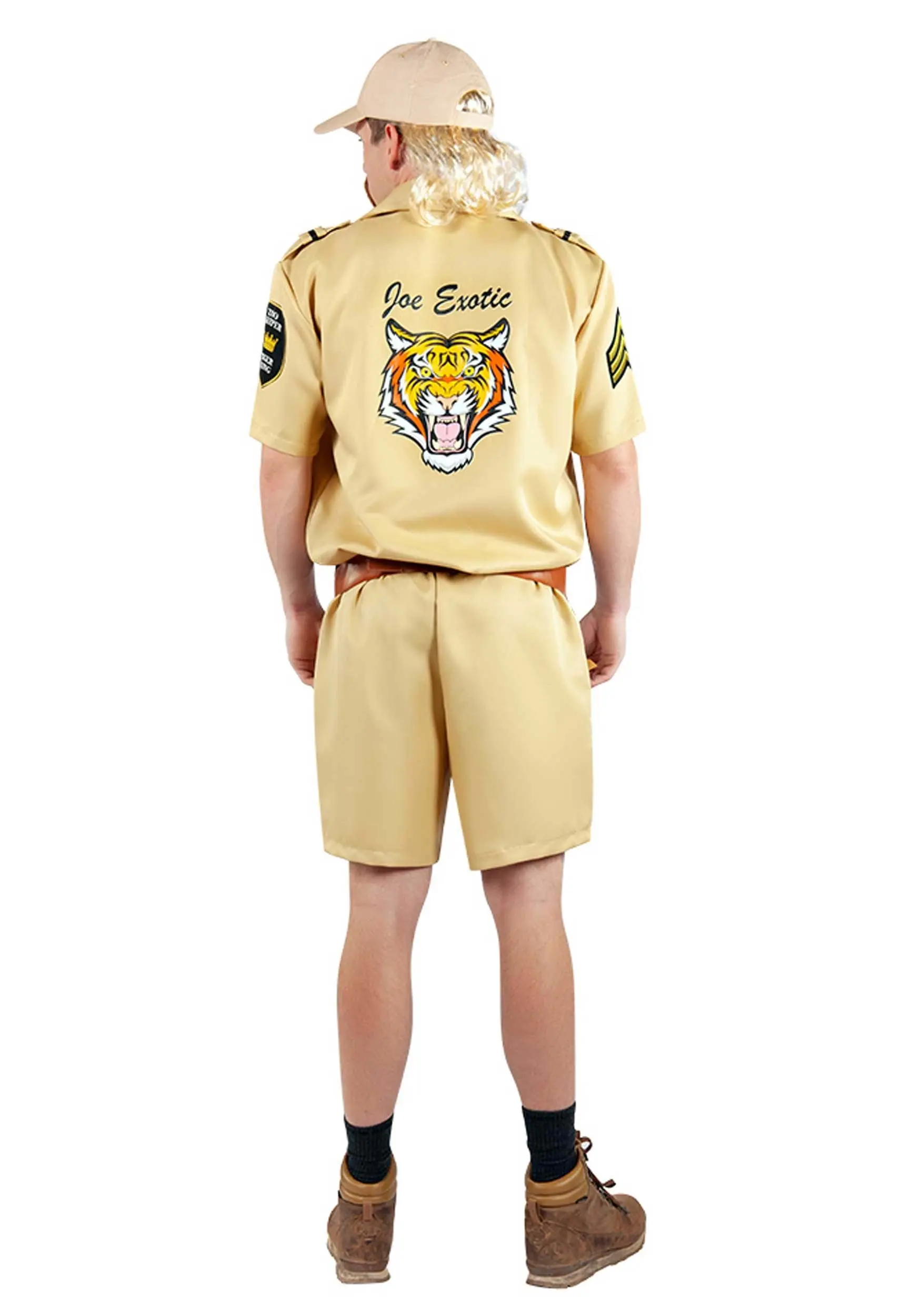 The outfit itself does a great job of setting the scene here, but it’s the details that make it for sure. The tiger applique on the back of the shirt makes it impossible to incorrectly mis-identify the beautiful blond tresses spilling down the back of the head as belonging to anyone other than the Tiger King himself.